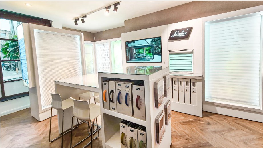 In each of our stores we have Luxaflex Gallery or Inspiration interactive stands, which allow you to see your blinds in the flesh, as well as in front of light boxes so you can perfectly judge how much light will enter your home with any given blind. In addition, we have numerous other displays from the other blind, shutter and fabric brands that we carry. All our stores have a free in-home measuring service, and we are specialists in measuring, supplying and fitting all window furnishings.